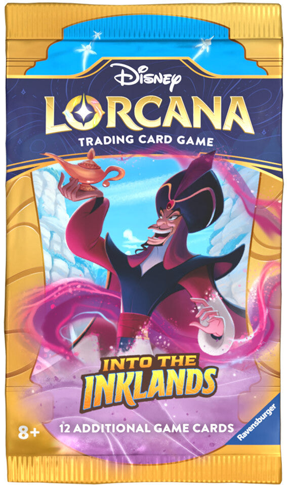 Disney Lorcana TCG Set 3 Into the Inklands Boosterpakke inneholder 12 tilfeldige kort fra serien.