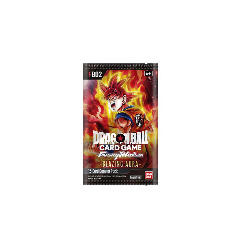"Dragon Ball Blazing Aura Booster Pack" er en pakke med tilleggskort til Dragon Ball Super Card Game, et populært samlekortspill basert på den berømte Dragon Ball-serien. Booster Packs som denne inneholder et visst antall tilfeldige kort som spillere kan bruke til å utvide sine kortsamlinger, forbedre sine spilldekk og få tilgang til nye karakterer, evner og strategier i spillet.