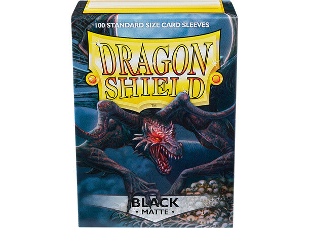 Dragon Shield kortbeskyttere (matte) med svart bakside. 100 kortbeskyttere per pakke.