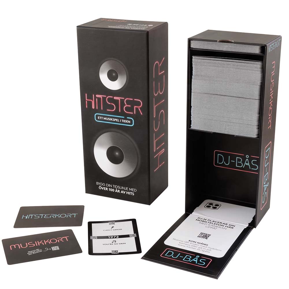 I Hitster fÄr spillerne utdelt kort med populÊre sanger, og mÄlet er Ä plassere dem i riktig rekkefÞlge basert pÄ utgivelsesÄr. Det er ingen behov for manuell poengfÞring - med en enkel skanning av QR-koden via en smarttelefon, spilles lÄtene automatisk fra Spotify!